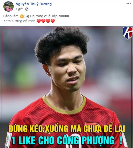 Bạn gái Huy Hùng - Nguyễn Thùy Dương cũng đã vỡ òa và phải thốt lên lên: ” I love You” dành cho bàn thắng quý như vàng của Công Phượng.