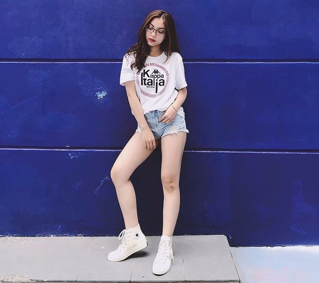 Sở hữu thân hình khá cân đối, bạn gái Quang Hải - Nhật Lê thường xuyên diện street style cá tính cùng giày thể thao, quần short 5cm “ngắn cũn cỡn” kết hợp với áo thun hoặc áo 2 dây mát mẻ.
