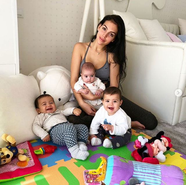 Georgina Rodriguez chăm sóc con cho Ronaldo.