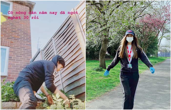 Vóc Đỗ đã chọn phương án ở lại Anh và tự cách ly thay vì quay trở về Việt Nam, cô nàng chia sẻ đã ở trong nhà được tròn 1 tháng. Trong thời gian khá rảnh rỗi này, người yêu Văn Dũng rất chăm chỉ chơi tiktok và dọn dẹp nhà cửa. Mới đây, cô nàng quay lại cảnh đang làm vườn và tự nhận mình là cô nông dân “Cô nông dân năm nay đã ngót nghét 30 rồi“.