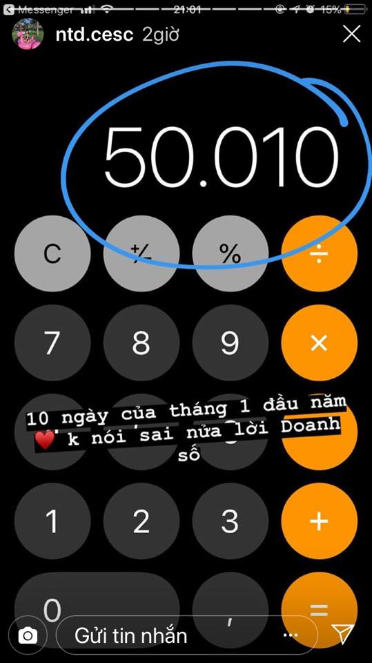 Dòng story “khoe” số tiền kiếm được trong 10 ngày đầu tháng 1 của Thùy Dương.