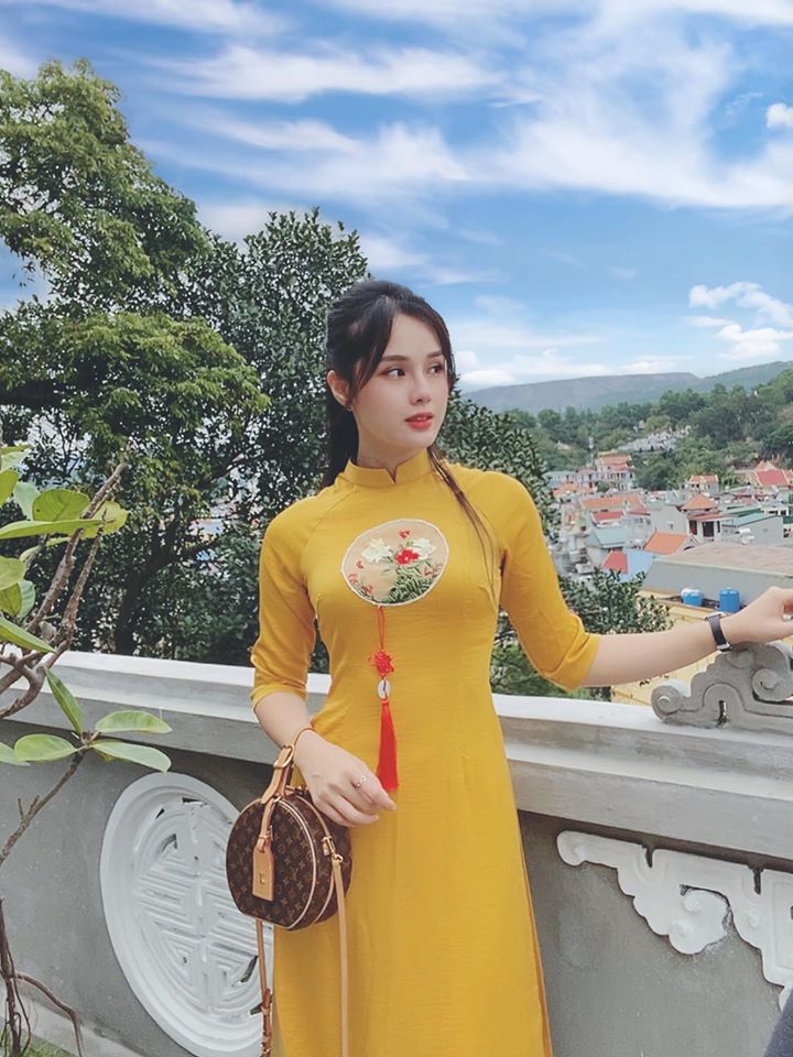 Bạn gái Trọng Đại nổi bật với chiếc áo dài truyền thống.