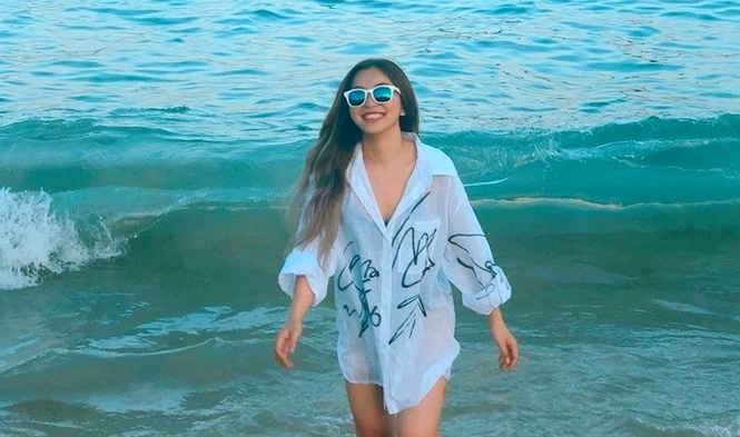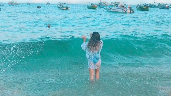 Nếu như người yêu Văn Đức nhận mưa lời khen từ các fan thì bạn gái Quang Hải tiếp tục trở thành tâm điểm của những chỉ trích. Theo đó, Nhật Lê diện bikini một mảnh màu đen và khoác áo sơ mi trong suốt bên ngoài. Đáng nói, cô nàng cố tình làm ướt áo ngoài và để lộ “nội y” bên trong gây phản cảm.
