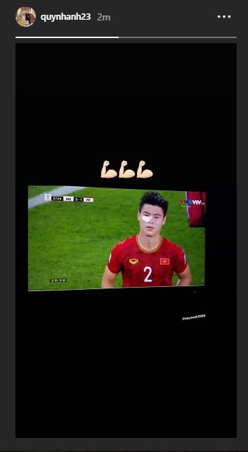 Người yêu của Duy Mạnh - Nguyễn Quỳnh Anh đăng story tỏ ra rất buồn vì nhìn bạn trai thương tích đầy người đến 'đổ máu' trong một ngày thi đấu vô cùng vất vả của hàng phòng ngự ĐTVN. Cô nàng 9x này cũng không quên động viên trung vệ 22 bằng những biểu tượng sức mạnh.