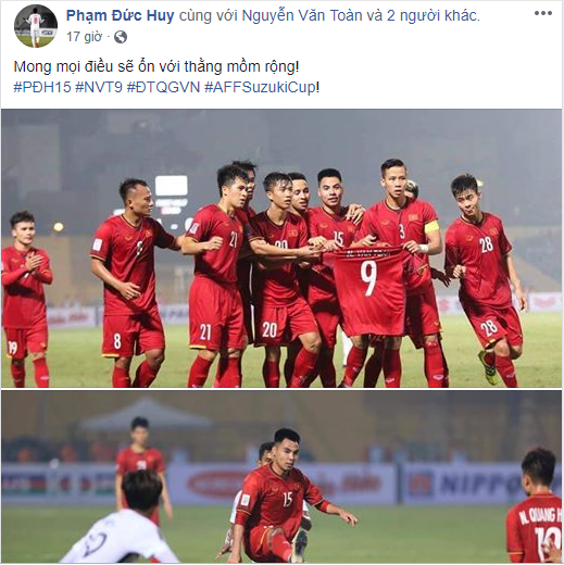 Vô số lời chia buồn, an ủi của các cầu thủ trong tuyển giành tặng cho người động đội kém may mắn. Trong đó có “hoàng tử” Đức Huy với dòng trạng thái: ” Mong mọi điều sẽ ổn vơi thằng mồm rộng!”.