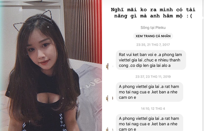 Mới đây, bạn gái Văn Toàn đăng hình ảnh của một fan hâm mộ kiên trì nhắn tin suốt 3 năm từ 2017 với mong muốn được Trang Nhung đồng ý lời mời kết bạn: “Anh Phong làm viettel Gia Lai. Anh rất hâm mộ tài năng của em. Kết bạn anh nhé. Cảm ơn em”. Có lẽ những tâm sự này đã bị vào tin nhắn chờ nên phải đến hôm nay cô mới đọc được.