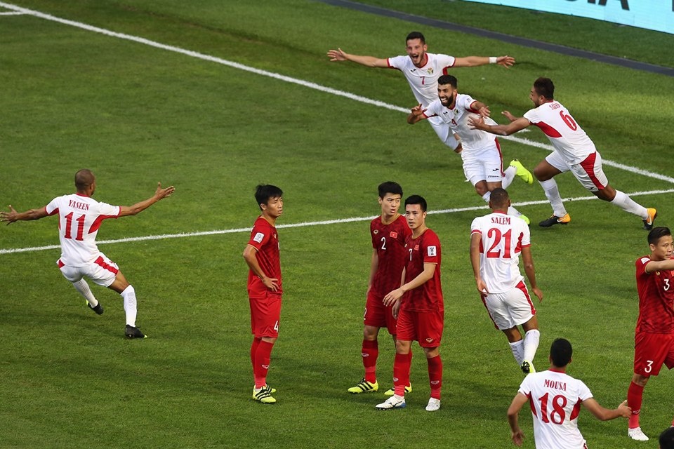 Ở phút 39, trọng tài Faghani cho Jordan hưởng một quả phạt gián tiếp trong tình huống Đỗ Hùng Dũng phạm lỗi với đối phương trong vòng cấm. Sau đó, Baha đá phạt hóc hiểm mang về bàn thắng mở tỷ số cho Jordan.