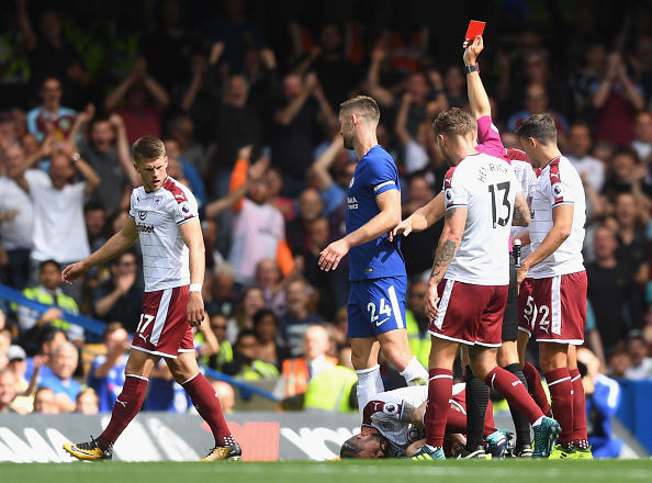 Cahill là cầu thủ đầu tiên nhận thẻ đỏ ở Ngoại hạng Anh 2017/18. Ở phút 14, Cahill tự làm mất bóng trước khi lao thẳng gầm giày vào chân đối thủ.