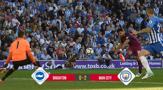 Aguero khai hỏa, Man City thắng nhẹ nhàng đội mới lên hạng. Dù làm chủ thế trận từ tiếng còi khai cuộc nhưng Man City không thể làm gì trước hàng thủ kín kẽ của đội chủ nhà. Bàn thắng ở phút 70 của Aguero và tình huống phản lưới nhà của cầu thủ bên Brighton giúp Man City khởi đầu tốt ở mùa giải mới.