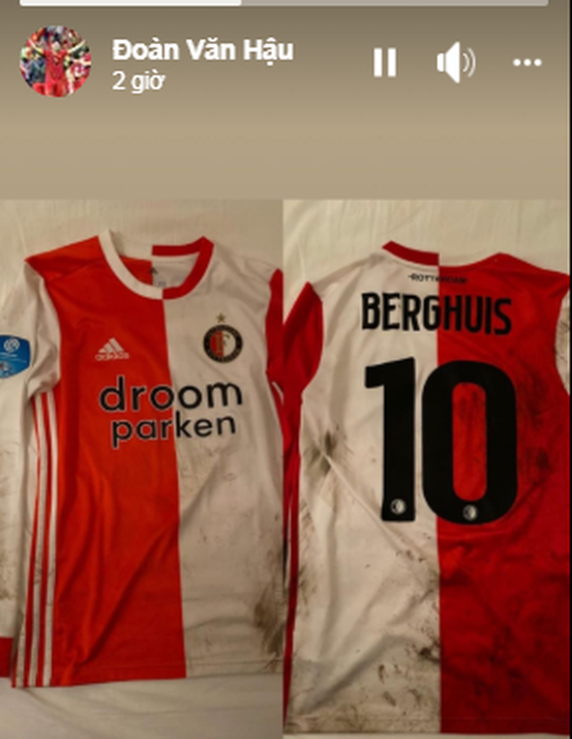 Dù không được ra sân thi đấu dù chỉ 1 phút, nhưng Đoàn Văn Hậu đã bất ngờ được nhận quà từ phía các cầu thủ Feyenoord Rotterdam. Sau khi trận đấu kết thúc, hậu vệ gốc Thái Bình đã may mắn nhận được chiếc áo đấu của tiền đạo số 10 - Steven Berghuis, đội trưởng của Feyenoord Rotterdam.