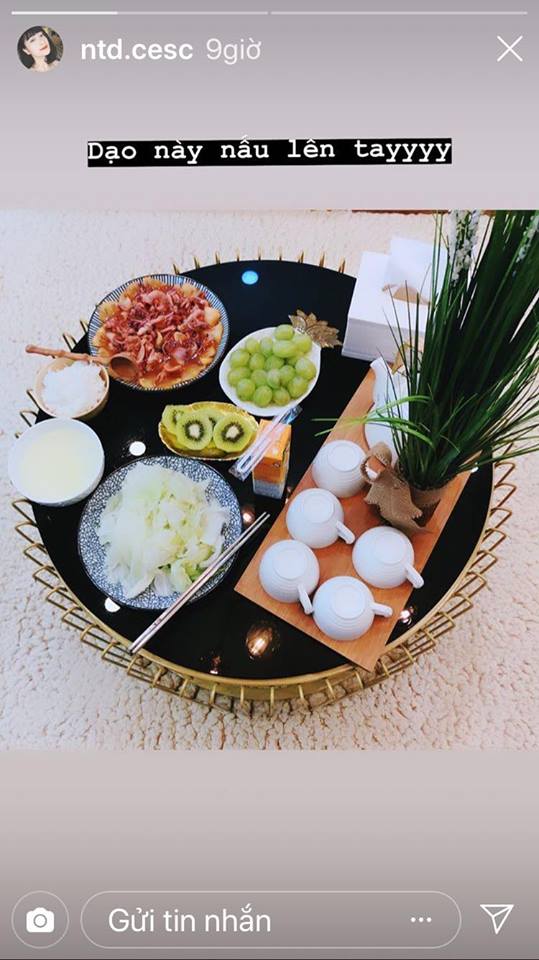 Bạn gái của “tiền vệ đá sân nhỏ 9 điểm” đăng trên story một bức ảnh một bàn ăn vô cùng đẹp mắt do cô nàng tự tay chuẩn bị.