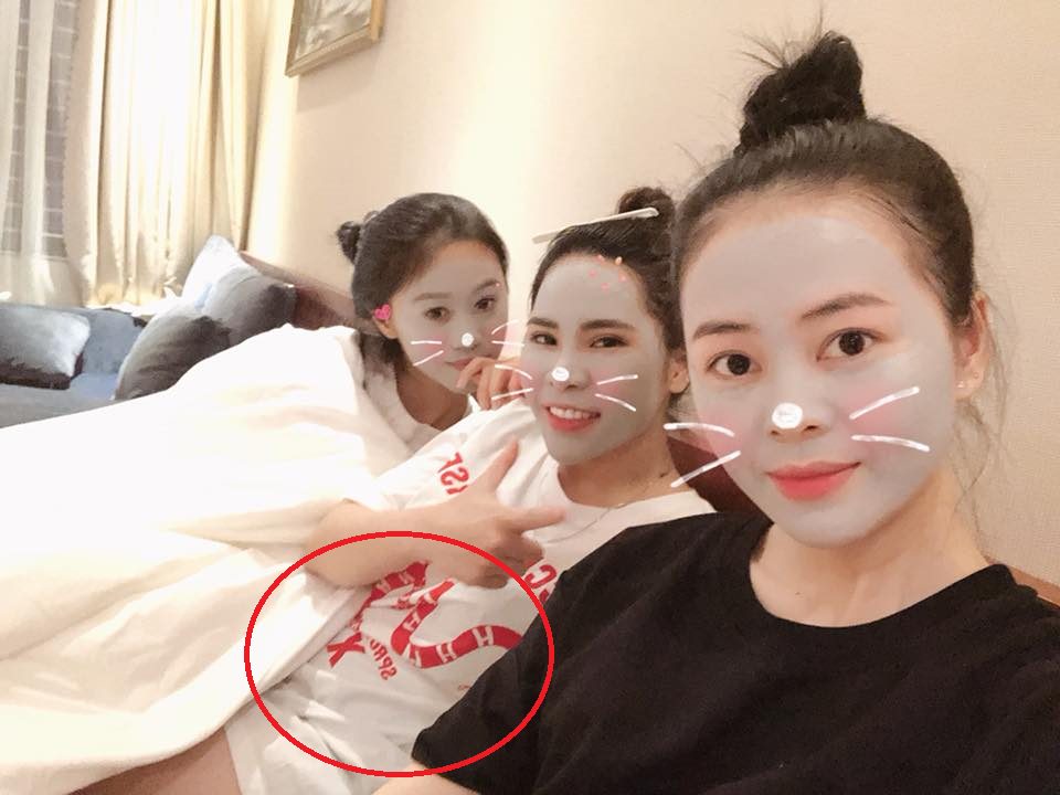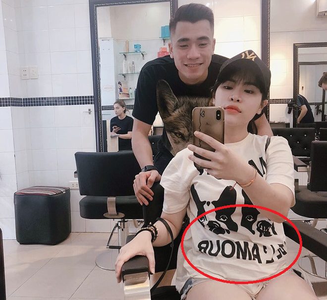 Mặc áo size rộng, bạn gái Bùi Tiến Dụng vẫn rộ vòng eo to bất thường so với nhiều cô gái cùng tuổi.