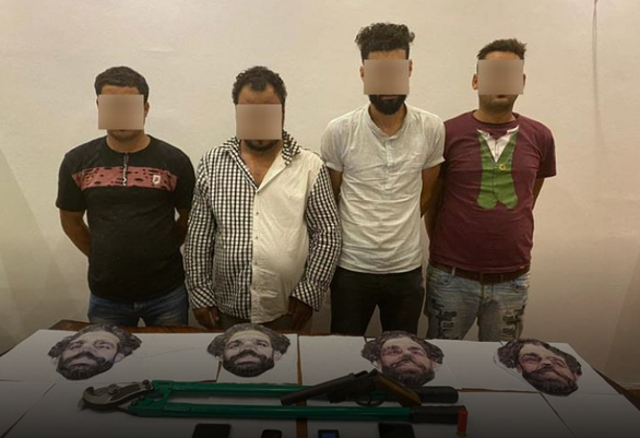 Bốn tên cướp bị bắt giữa cùng vũ khí và những chiếc mặt nạ Salah - Ảnh: MASRAWY