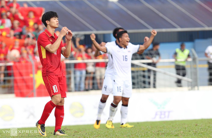 Thái Lan chịu áp lực phải thắng. Trong khi Việt Nam vừa đá vừa nghe ngóng và vào sân với mục đích không rõ ràng, Thái Lan chỉ có một cửa duy nhất là chiến thắng. Ngay kể cả khi bị dẫn trước, Việt Nam vẫn có thể vào bán kết. Chính tâm lý “nửa nạc nửa mỡ” đó đã khiến Việt Nam bị áp lực lớn khi rơi vào thế rượt đuổi. Điều ấy thể hiện rõ qua cú sút phạt đền hỏng ăn của Công Phượng, ngôi sao hàng đầu của Việt Nam ở giải này. Ảnh: VN Express