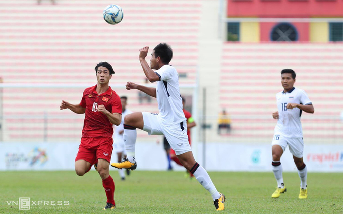 Thể lực yếu hơn của Thái Lan. HLV Worrawoot đã cất nhiều trụ cột như Battambang, Pattiwat, Sukrit, Suriya… ở trận gặp Philippines, trong khi HLV Hữu Thắng liên tục sử dụng những cầu thủ ông cho là tốt nhất, như Công Phượng, Văn Toàn…. Sau trận gặp Indonesia, đa số những cầu thủ đá chính của Việt Nam đều sa sút thể lực, thậm chí trụ cột ở tuyến giữa là Duy Mạnh dính chấn thương. Đó là lý do giúp Thái Lan chơi tốt đến tận phút cuối cùng. Ảnh: VN Express