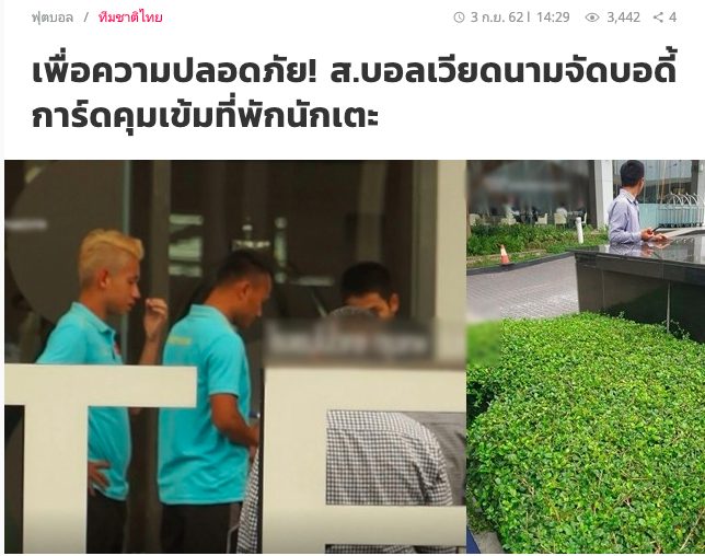 Tại khách sạn của ĐT Việt Nam, Impact Novotel, VFF cũng đề cao cảnh giác. Chiều hôm qua, toàn đội được cho xả trại. Đó cũng là cơ hội để các cổ động viên dễ dàng tiếp cận với tuyển thủ. Theo tờ Siamsport, VFF đã thuê cả những vệ sĩ chuyên nghiệp để tránh người hâm mộ tiếp cận với ĐT Việt Nam.