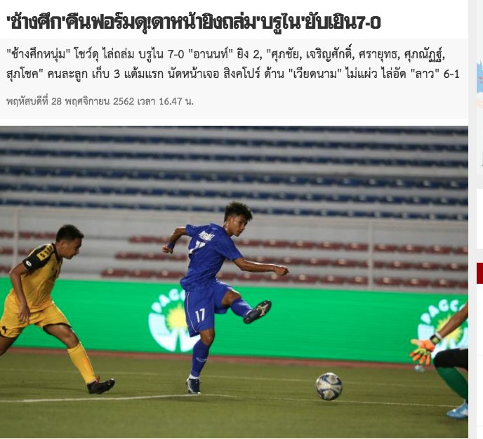 “Một trận đấu hay đã được U22 Thái Lan thể hiện. Họ ghi 7 bàn, qua đó huỷ diệt U22 Brunei khi không để đối thủ có được bàn thắng nào.