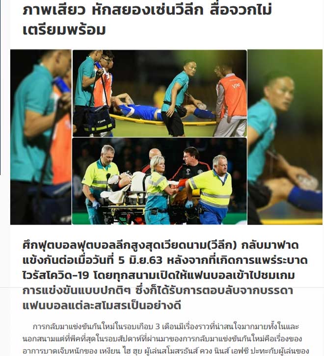 Mới đây, trang báo thể thao Siamsport của Thái Lan cũng đã đưa tin về tình huống va chạm “nổi da gà” trên của Hải Huy và Hoàng Lâm.