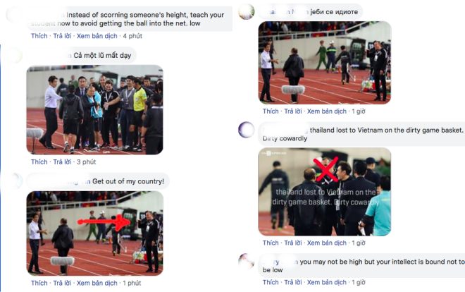 Chứng kiến HLV Park Hang Seo bị chế giễu, các CĐV Việt Nam đã tỏ ra rất tức giận. Ngay khi trận đấu khép lại, rất nhiều CĐV Việt Nam đã để lại bình luận cay nghiệt, đồng thời thả phẫn nộ trên trang cá nhân của vị trợ lý HLV Thái Lan. Theo đó, ngoài những lời chỉ trích, chê bai thì còn có lời đe dọa nhắm vào vị trợ lý HLV này.