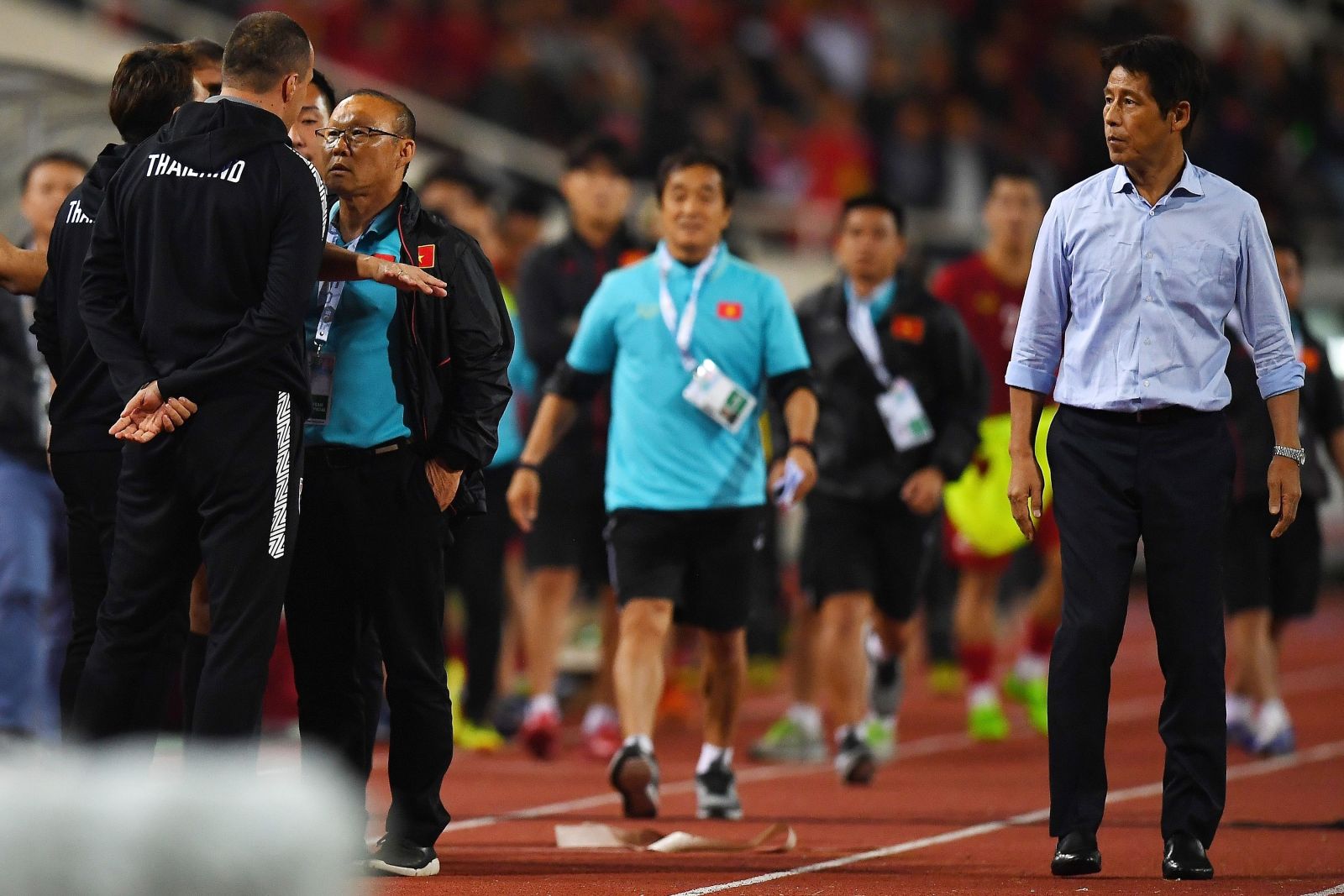 Sau khi tiếng còi mãn cuộc trận đấu Việt Nam và Thái Lan vang lên, ống kính truyền hình đã mang đến các khoảnh khắc bất ngờ về HLV Park Hang Seo khi ông tranh cãi dữ dội với một thành viên ban huấn luyện đội khách.