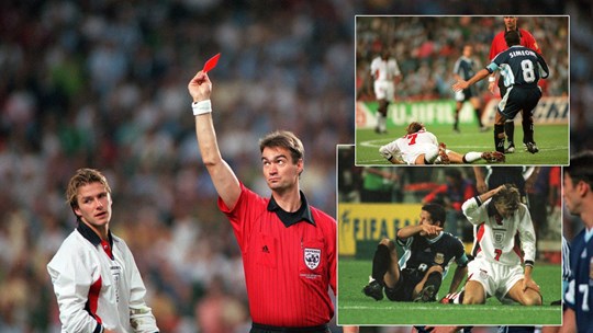 Trọng tài chính Nielsen chạy tới rút thẻ vàng cảnh cáo Simeone, nhưng tặng ngay cho Beckham một tấm thẻ đỏ. Chơi thiếu người, Anh không thể ép sân như trước và phải kéo dài trận đấu đến loạt đá luân lưu rồi thất trận. Vài tháng sau khi World Cup khép lại, Simeone hả hê nói về “chiến công” đó: “Trọng tài đơn giản là rơi vào bẫy. Đó là một tình huống rất khó quyết định, rất khó trốn tránh vì tôi ngã rất đẹp”.