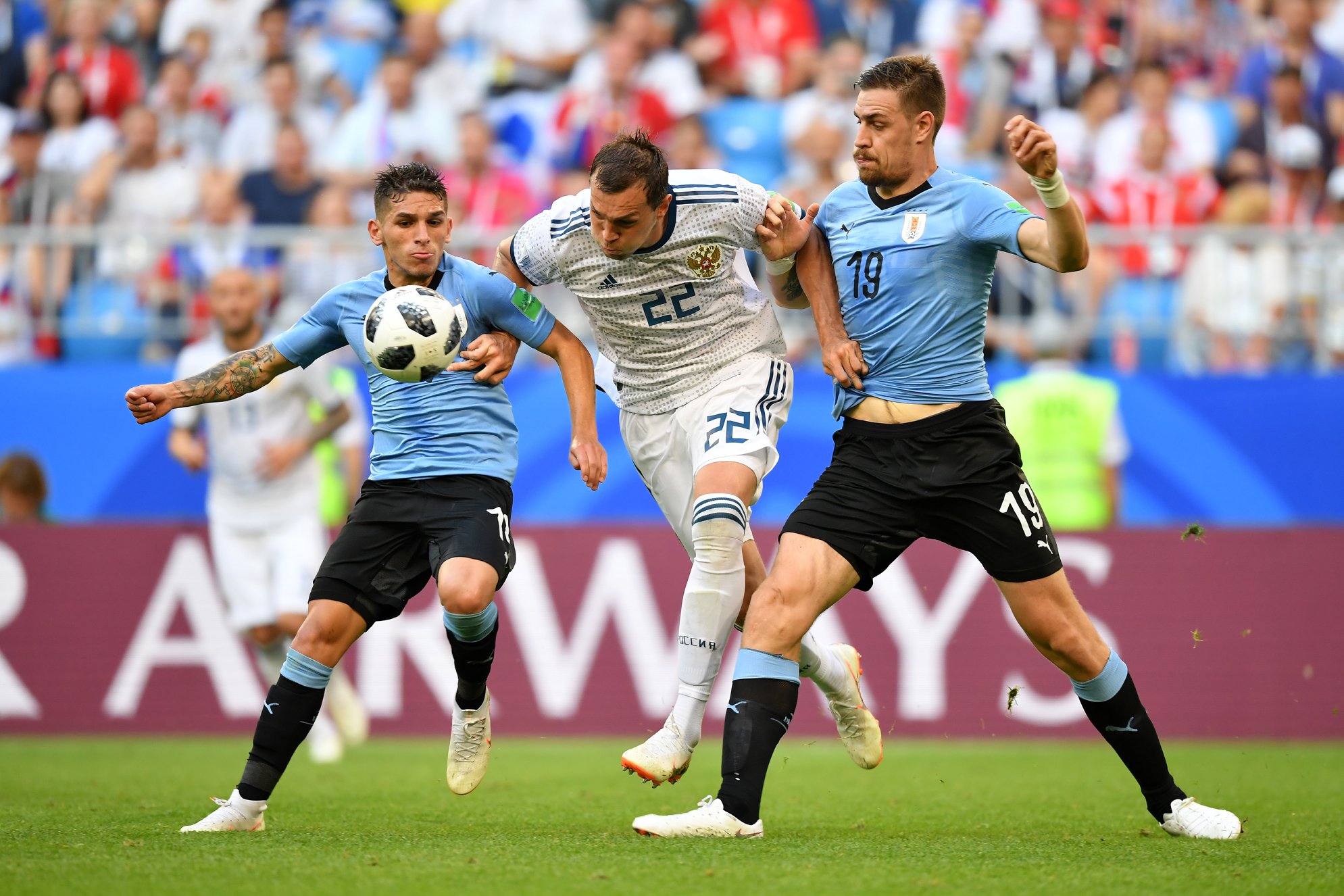 Không có đội nào chạy khỏe bằng Nga trong 2 loạt trận đầu tiên (các cầu thủ Nga di chuyển tổng cộng 233km - nhiều hơn đến 8km so với đội kế tiếp). Và ngay khi thống kê ấy xuất hiện, Uruguay thắng Nga một cách áp đảo.