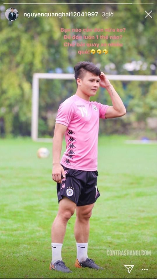 Câu trend “Hải, quay xe” thực sự đang làm khổ Quang Hải, vì trùng tên với câu nói đang gây sốt mạng xã hội. Thế nên, chàng tiền vệ CLB Hà Nội cũng than thở trên mạng xã hội: “Bạn nào cần đón không, để đón luôn một thể chứ bị bắt quay xe nhiều quá”.