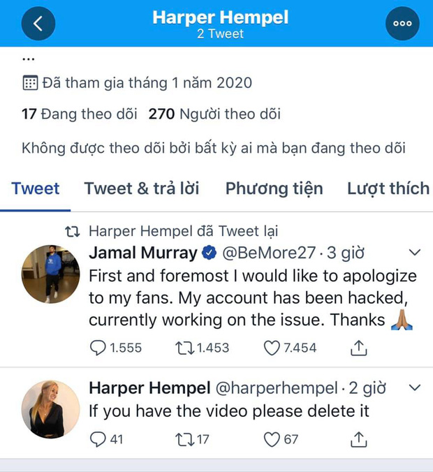 Hiện tại, đoạn clip nóng trên vẫn đang xuất hiện dày đặc trên MXH và điều này khiến cô bạn gái Jamal Murray tỏ ra vô cùng thất vọng và buồn hơn bao giờ hết. Thậm chí, cô nàng còn đã đăng tải một đoạn video cầu xin mọi người hãy ngăn chặn việc lan truyền đoạn clip trên.