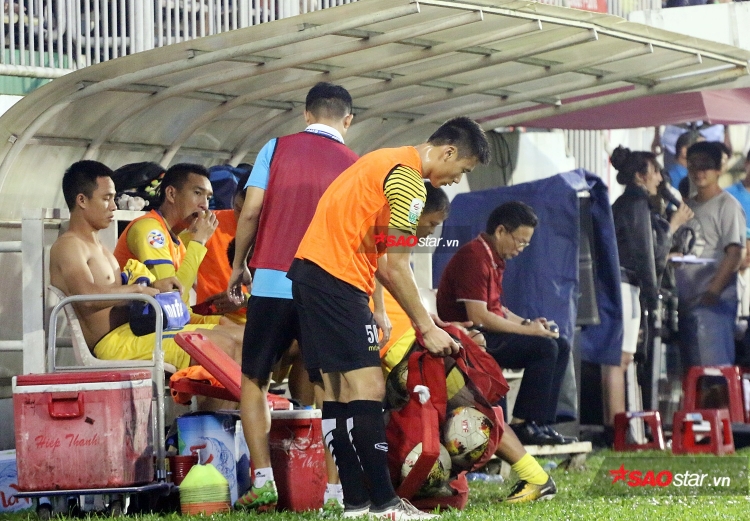 Hình ảnh Bùi Tiến Dũng chỉ biết đá tập trước trận đấu, nhặt bóng rồi chơi “bóng ma” khiến nhiều người không khỏi xót xa cho thân phận thủ môn này. “Thủ môn quốc dân” chỉ biết có thể nhìn sang, chào xã giao Văn Toàn bên phía CLB HAGL.