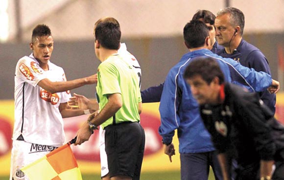 Vụ việc xảy ra vào năm 2010. Đó là ở trận đấu giữa Santos và Atletico Goianiense ở Vila Belmiro. Neymar, khi đó mới 18 tuổi, đòi được đá phạt đền trong tình huống anh bị đốn ngã trong vòng cấm đối thủ.