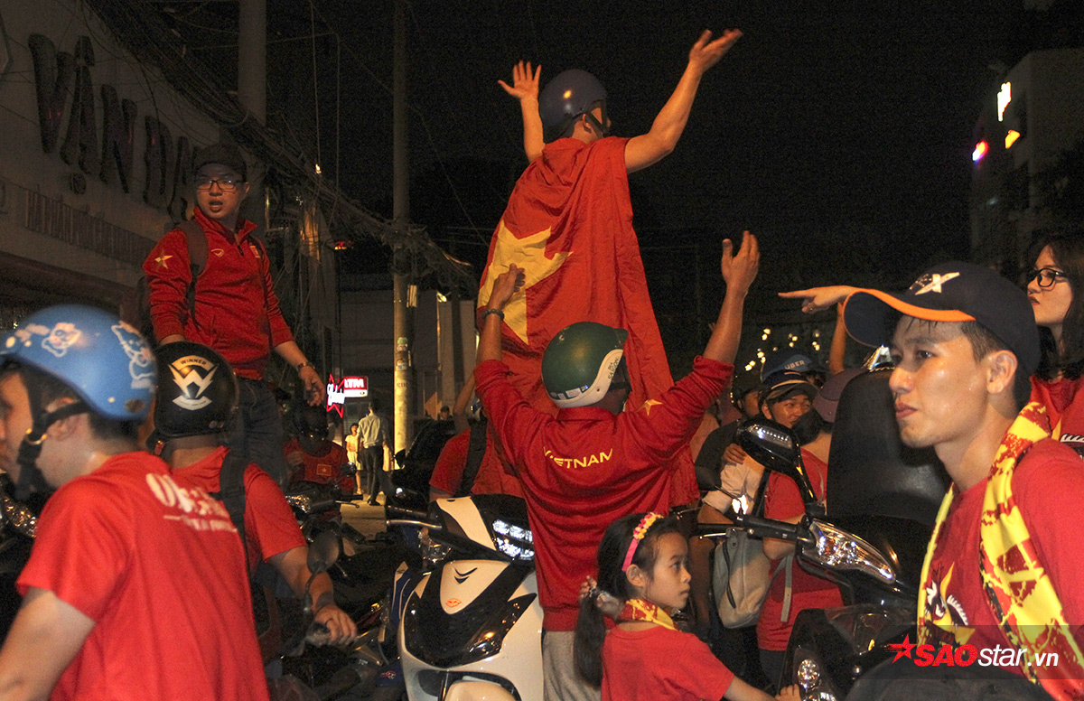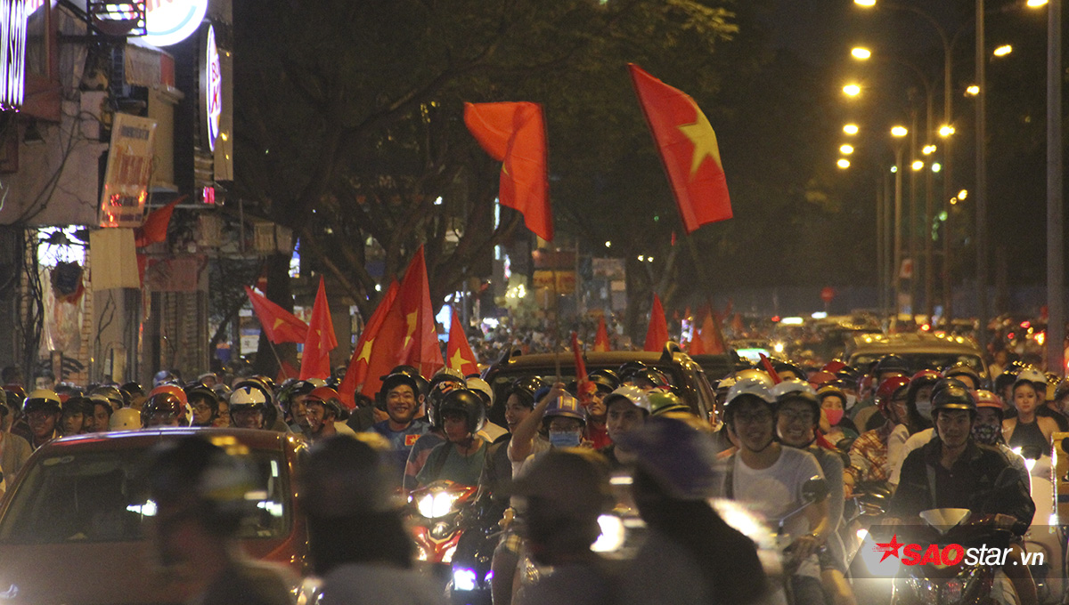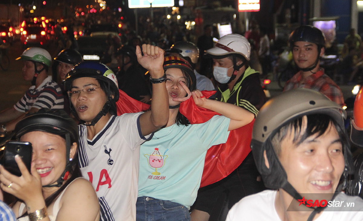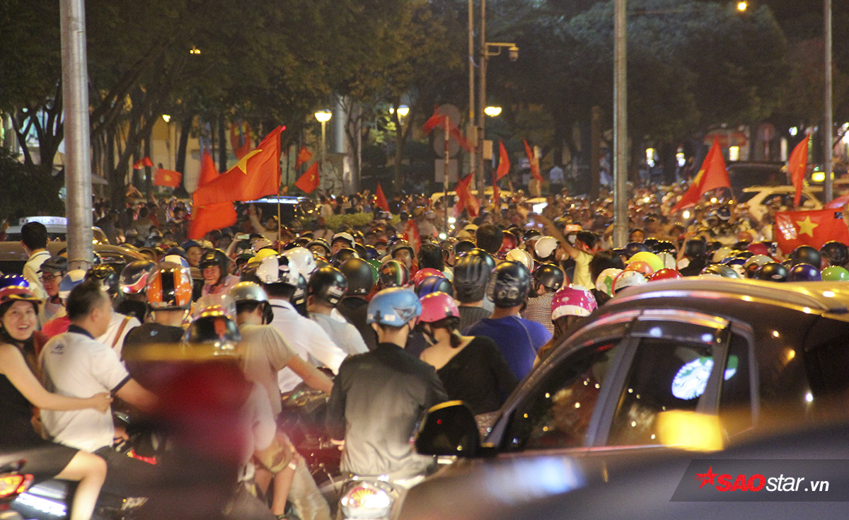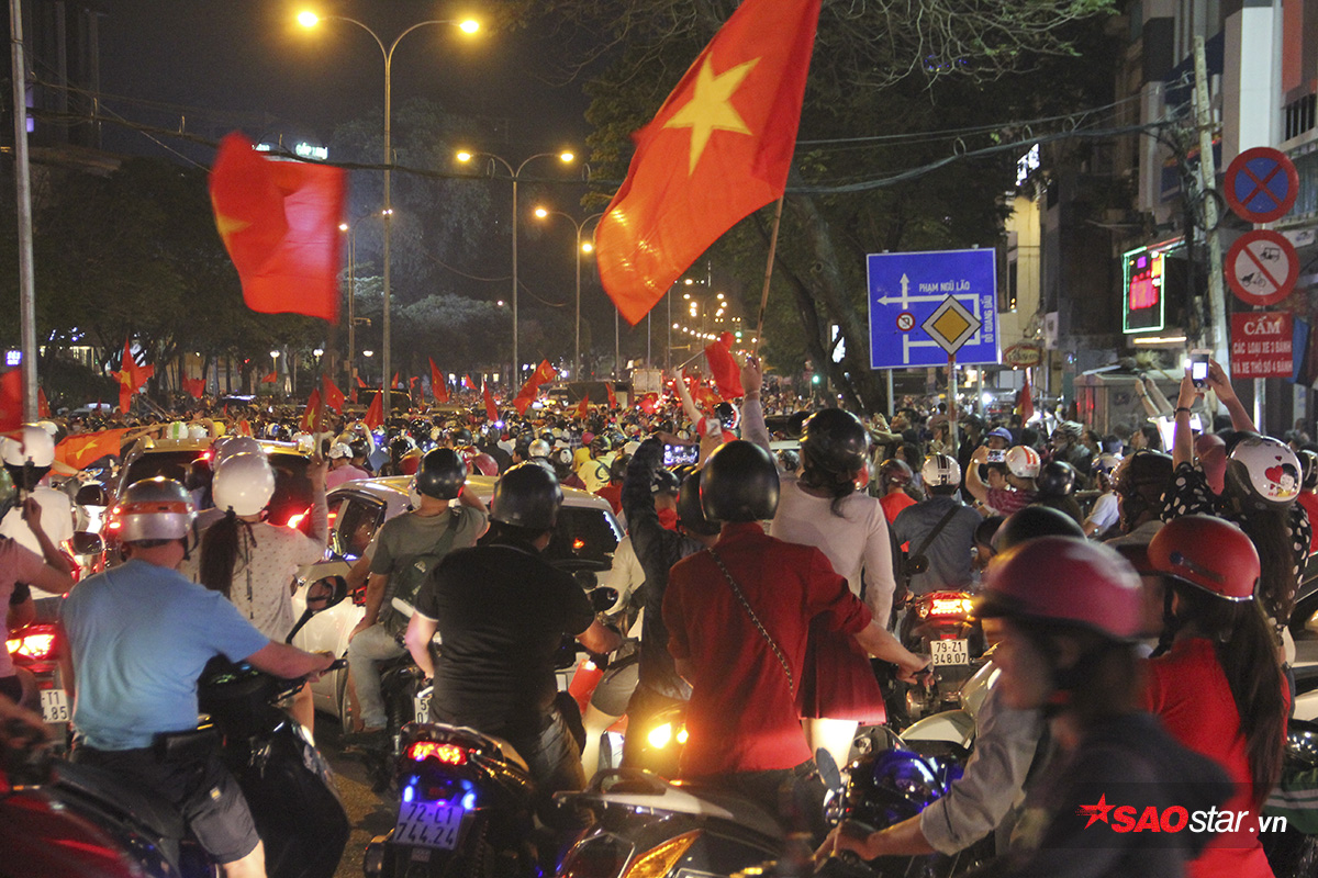 Hòa vào niềm vui chiến thắng, hàng nghìn người dân ở TP.HCM đã cùng đổ ra đường để “đi bão” ăn mừng kỳ tích của thầy trò HLV Park Hang Seo.