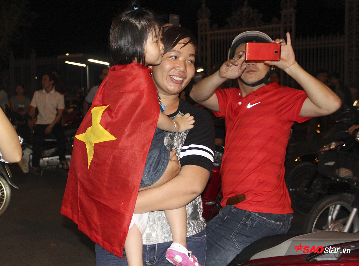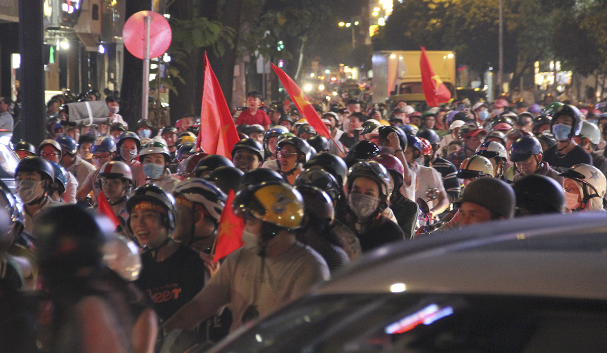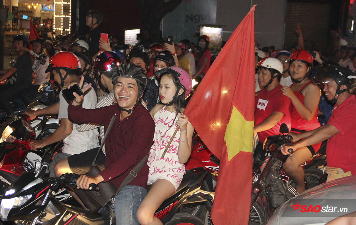 Người hâm mộ phấn khích hò hét, ca hát, nhảy múa khắp các tuyến đường. Không khí cuồng nhiệt lan tỏa trên khắp các con phố với khẩu hiệu “Việt Nam chiến thắng, Việt Nam vô địch”. Đâu đâu cũng ngập tràn cờ đỏ sao vàng vui như Tết.