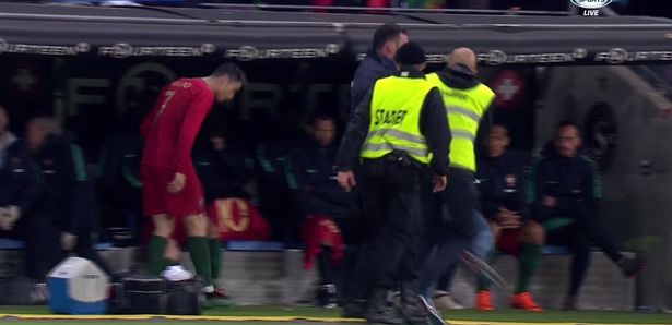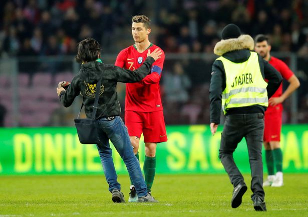 Trước khi kết thúc trận đấu, ngôi sao người Bồ Đào Nha đã bị một số cổ động viên tiếp cận để dành cho anh một cái ôm, thậm chí là một nụ hôn