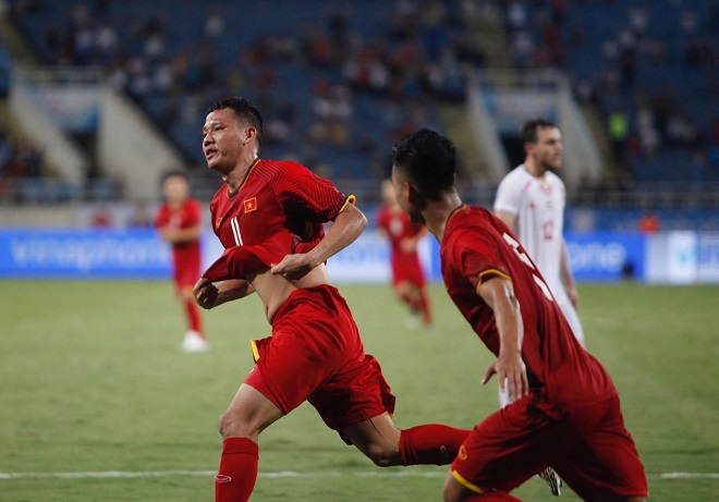Anh Đức vừa ghi bàn trong cuộc đối đầu với U23 Palestine.