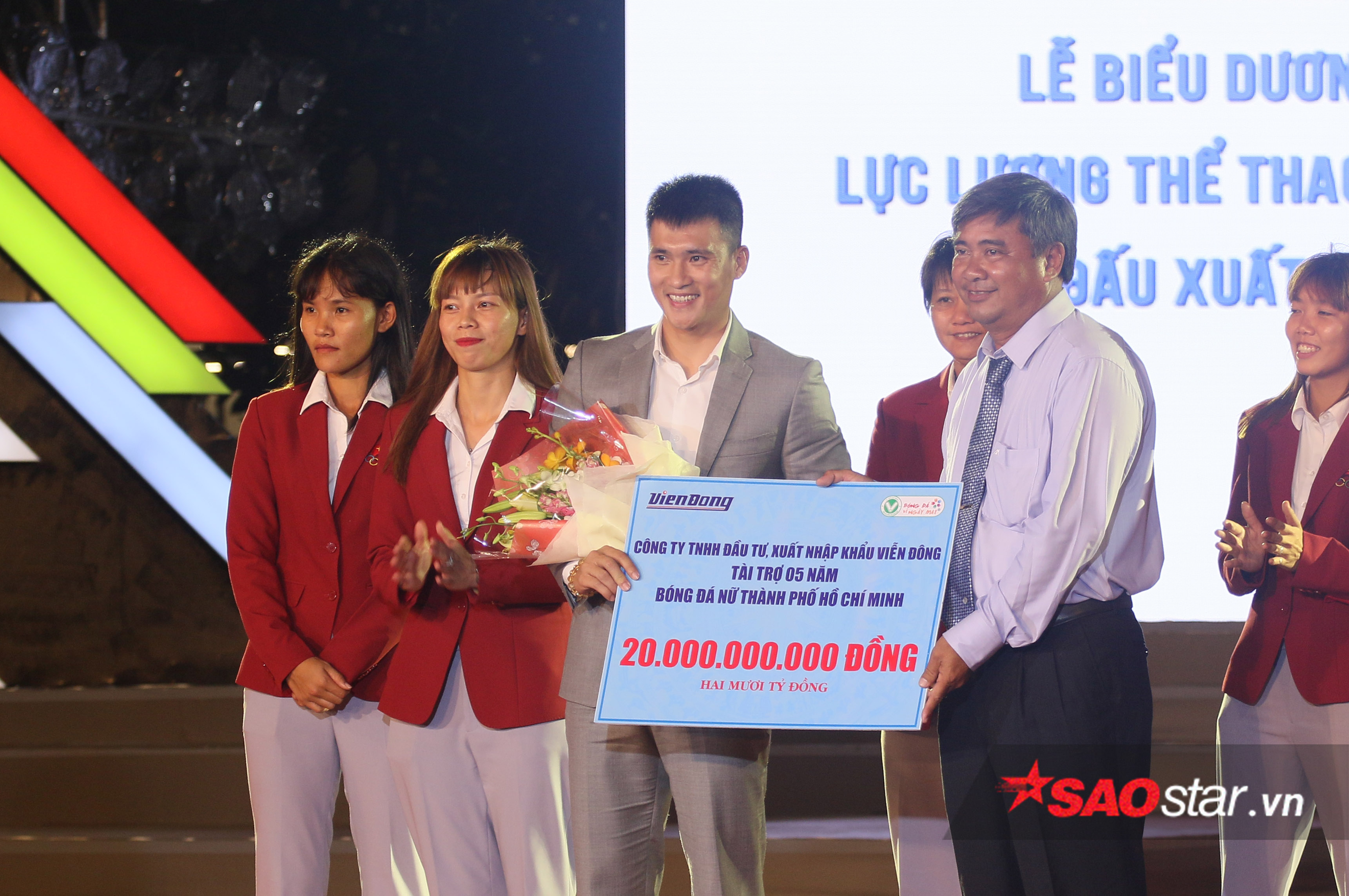 Chủ tịch CLB TP.HCM - Lê Công Vinh đã đại diện cho nhà tài trợ trao 20 tỷ đồng (mỗi năm 4 tỷ đồng) cho bóng đá nữ TP.HCM vào tối 7/9. Đó có thể nói là tin vui rất lớn cho bóng đá khi lần đầu tiên họ được nhận một số tiền khủng như thế.