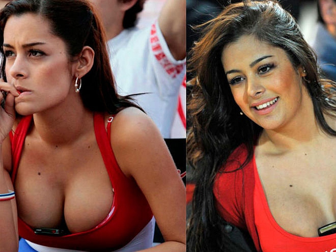 Người đẹp đến từ Paraguay luôn cổ vũ cuồng nhiệt đội bóng quê hương trên các khán đài và trở nên nổi bật với hình ảnh kẹp một chiếc điện thoại di động vào giữa “gò bồng đào” đẹp không tì vết của mình.