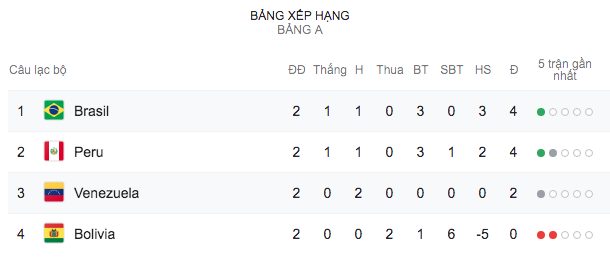 Về phần Venezuela, với 1 điểm có được, họ vẫn có quyền tin vào phép màu khi lượt trận cuối họ chỉ phải gặp Bolivia, đội vừa để thua 2 trận liên tiếp.