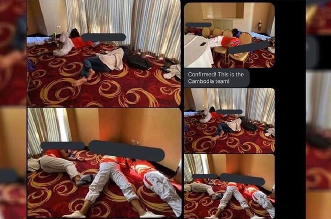 Các cầu thủ của đội U22 Campuchia thậm chí còn phải nằm lăn lóc trên sàn nhà vì không được xếp phòng khách sạn.