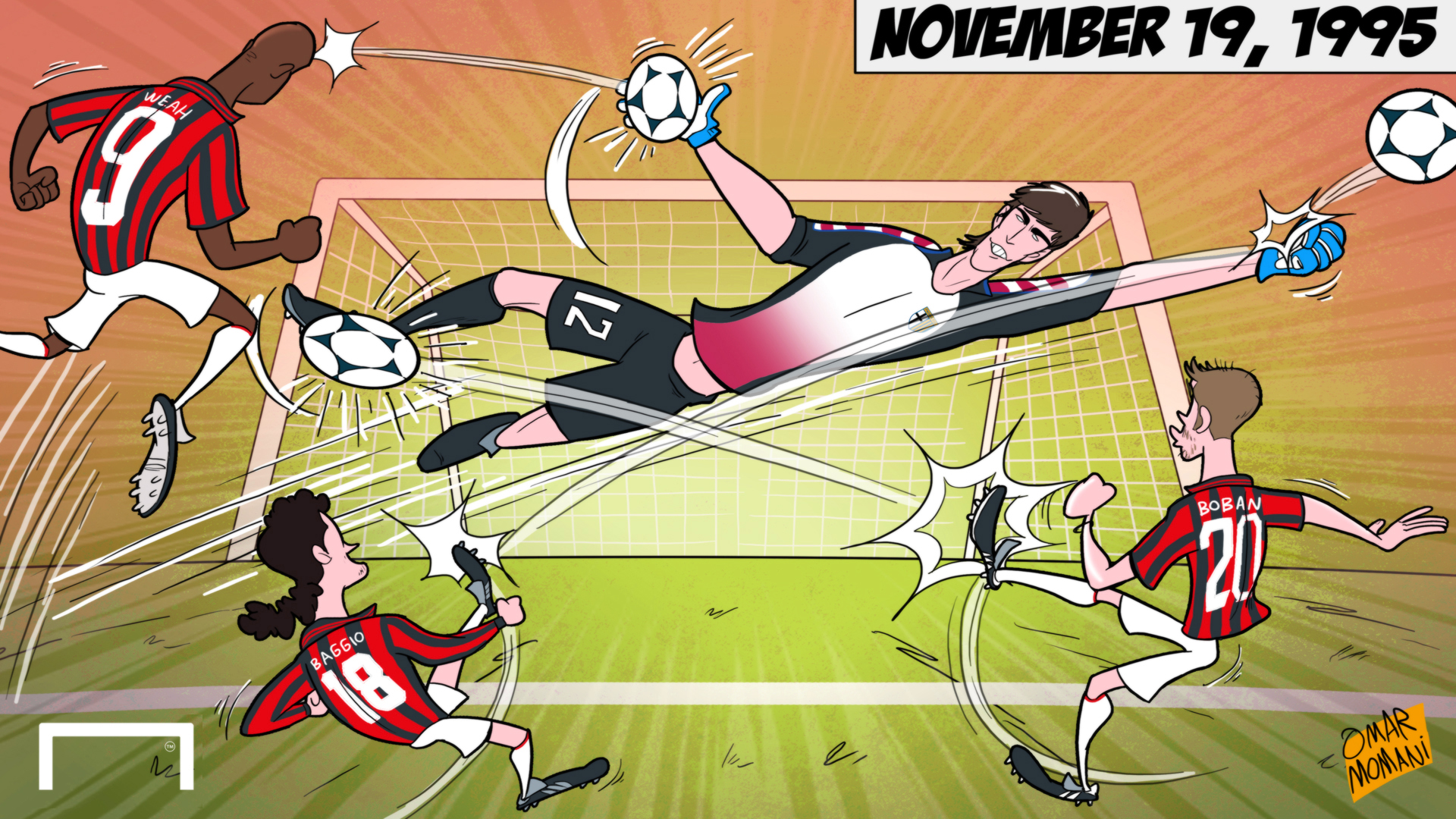 Bức biếm họa trận ra mắt của Buffon được gọi là “Ngày ra đời của một huyền thoại”.