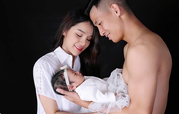 Vợ chồng Bùi Tiến Dũng đón con đầu lòng ( Ảnh: FBNV)