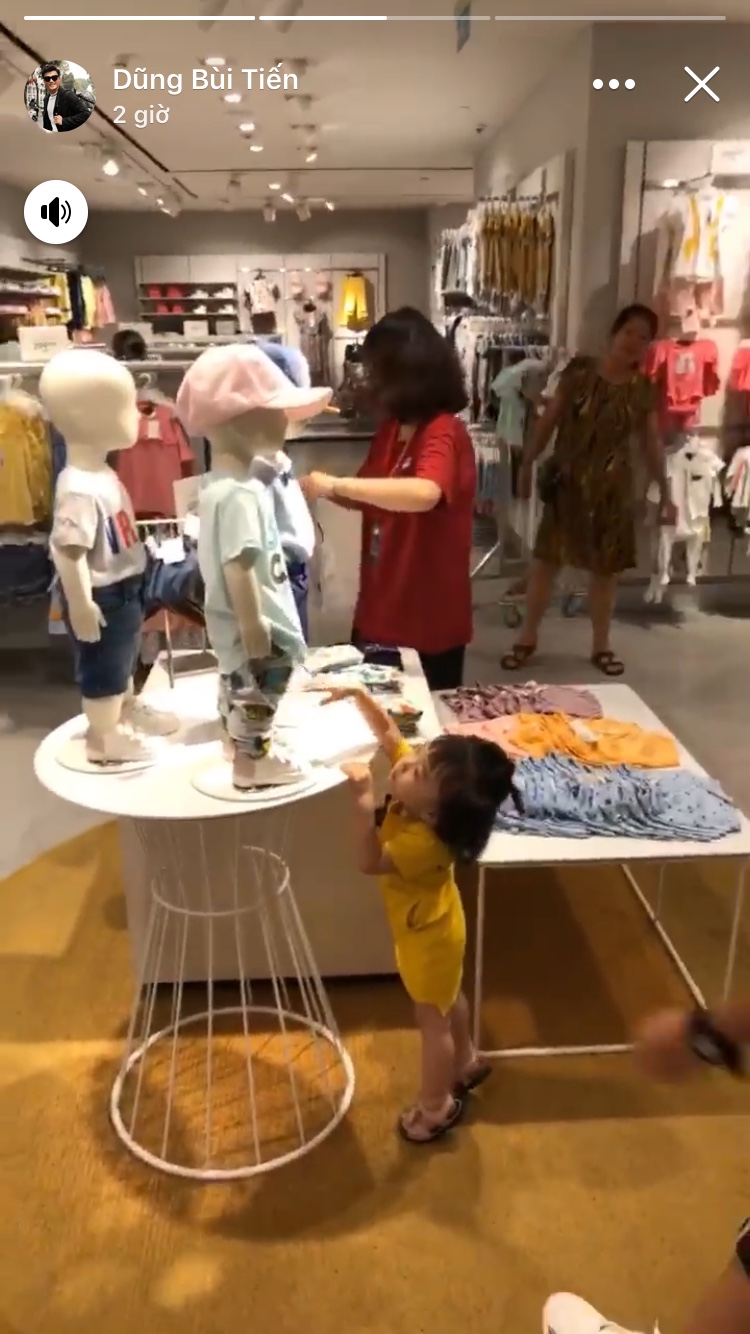 Mua sắm dường như là sở thích của con gái ngay cả khi còn bé rồi. Bùi Tiến Dũng dẫn cô bé đi shopping khiến cô bé rất thích thú.