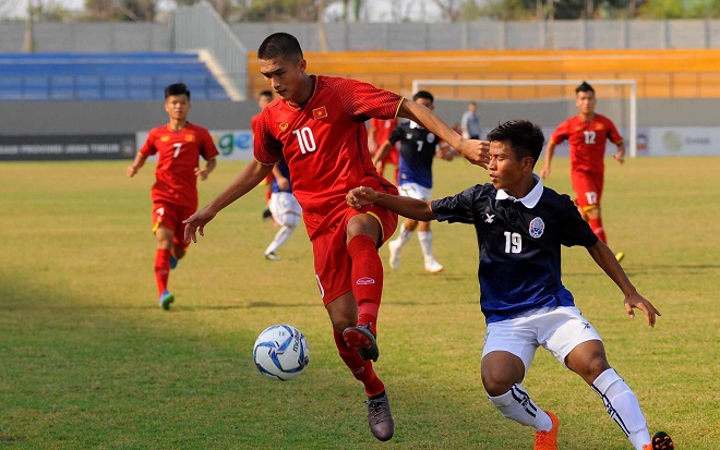 U16 Việt Nam thi đấu đầy quyết tâm. Ảnh: Vietnamnet.vn