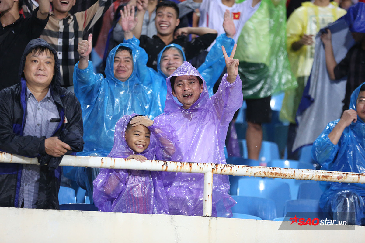 Những CĐV ít ỏi trong cơn mưa chiều muộn ở Mỹ Đình. Để tới sân bóng trong điều kiện thời tiết không thuận lợi với họ là cả một cuộc hành trình không hề dễ dàng. Tuy nhiên, chính những hình ảnh ít ỏi còn sót lại này, người ta mới nhìn thấy được sức sống của bóng đá Việt Nam vẫn còn tồn tại và rất đáng được trân trọng.