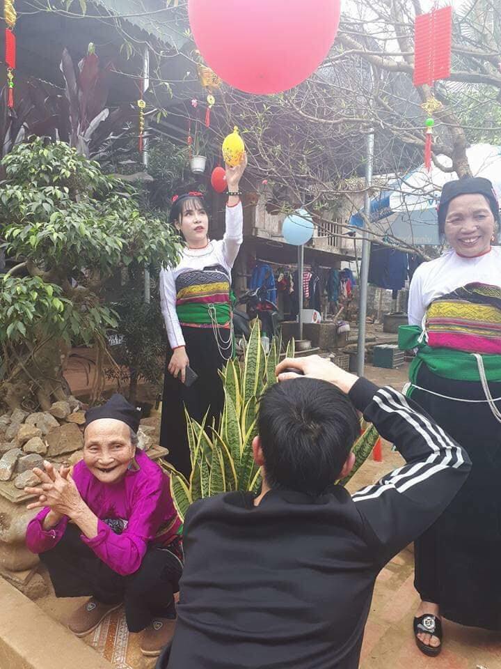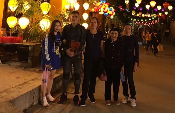 Bạn gái Bùi Tiến Dụng (bên trái) cùng bà Phạm Thị Điều chụp hình.