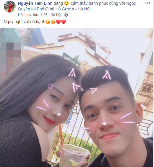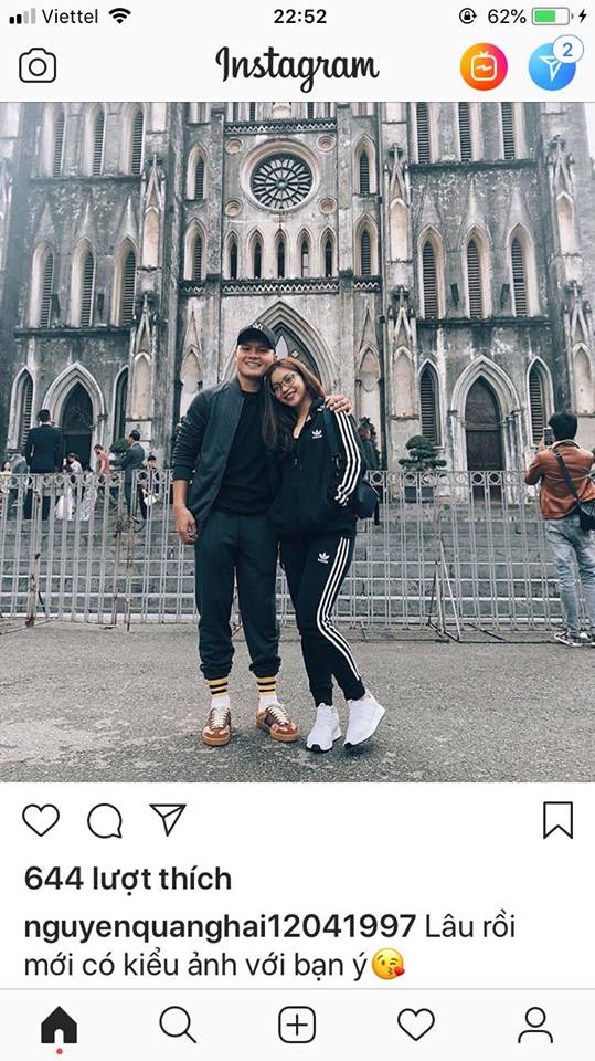 “Cầu thủ xuất sắc nhất trận Việt Nam - Campuchia” Quang Hải cũng đăng ảnh đi chơi cùng người yêu.