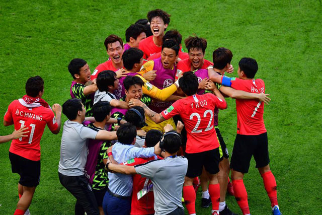 Các cầu thủ Hàn Quốc ăn mừng chiến thắng lịch sử. Ảnh: Getty.