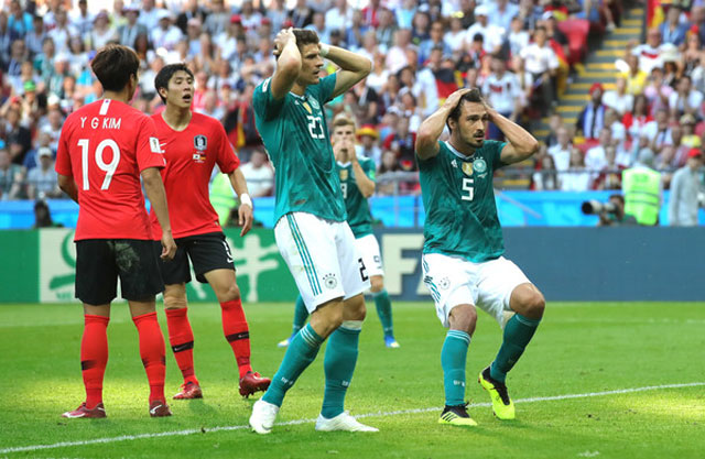 Với việc buộc phải giành chiến thắng để nuôi hy vọng giành quyền đi tiếp, ĐT Đức đã chủ động tràn lên tấn công ngay sau tiếng còi khai cuộc của trọng tài Mark Geiger. Ảnh: Getty.