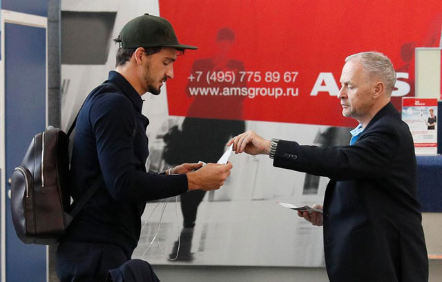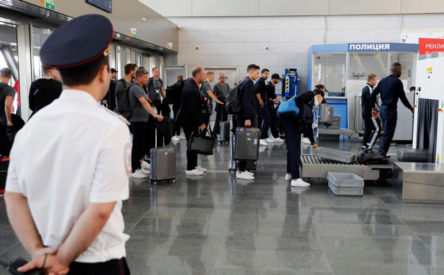 Marco Reus và Manuel Neuer kiểm tra an ninh hàng hóa tại sân bay Vnukovo.