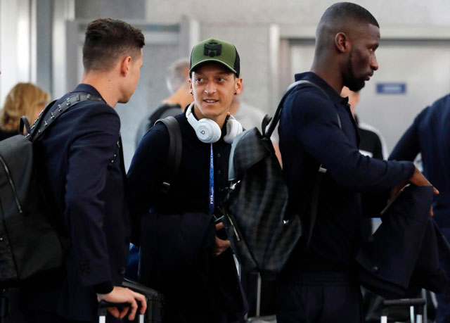 Mesut Ozil, một trong những cầu thủ của ĐT Đức bị chỉ trích nhiều nhất về nước với gương mặt buồn bã.