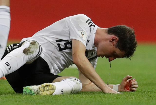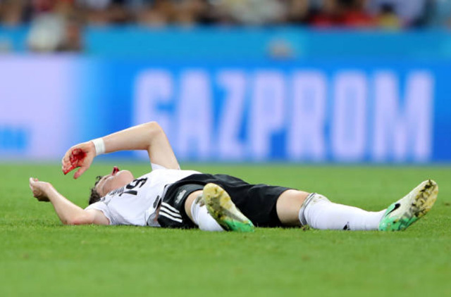 Cụ thể, ở phút 24, ngôi sao thuộc biên chế Bayern Munich đã bị chảy máu mũi rất nhiều do lãnh trọn cú đá của tiền đạo Ola Toivonen bên phía đội bạn.